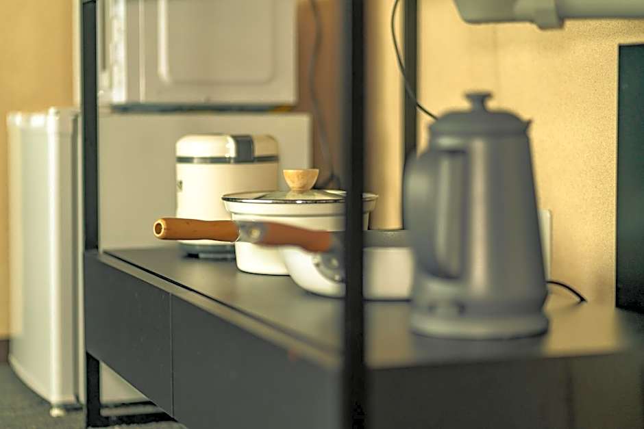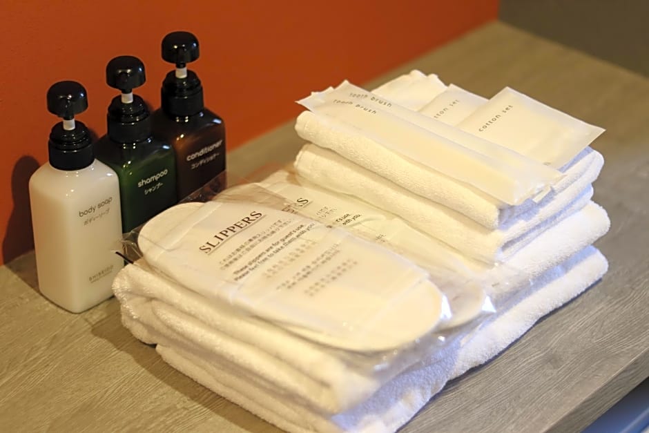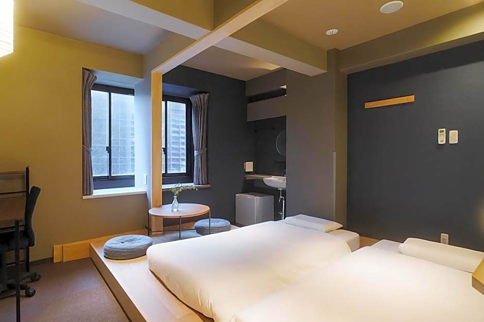 The family room includes a private bathroom, well-fitted with a bath, a shower, a bidet, a hairdryer and slippers. The family room features air conditioning, tatami, a dining area, a carpeted floor, as well as a flat-screen TV. The unit has 6 futons.